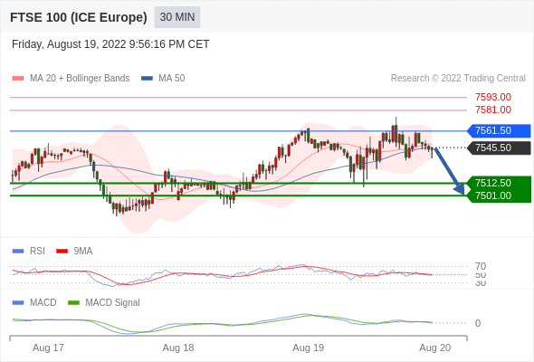 英国富时100指数期货 当日内: 看跌,当 7561.50 为阻力位。