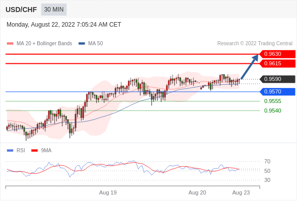 在 0.9570 之上,看涨,目标价位为 0.9615 ,然后为 0.9630 。