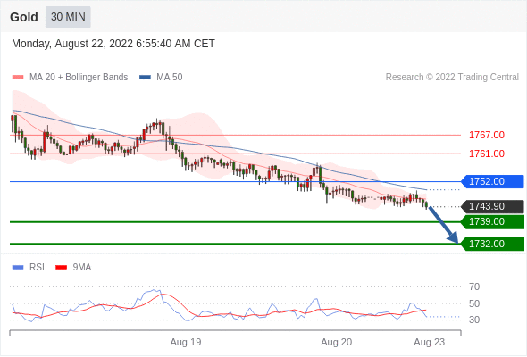 在 1752.00 之下,看跌,目标价位为 1739.00 ,然后为 1732.00 。