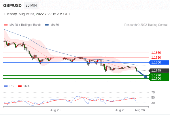 在 1.1800 之下,看跌,目标价位为 1.1720 ,然后为 1.1700 。