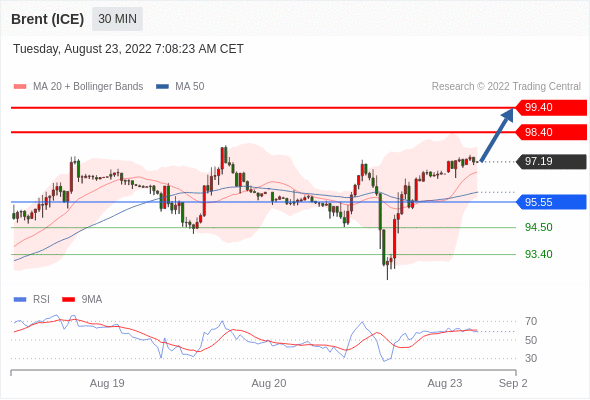 在 95.55 之上,看涨,目标价位为 98.40 ,然后为 99.40 。