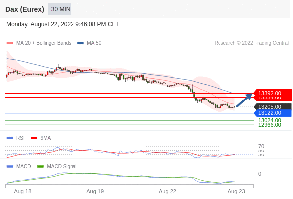 德国DAX指数期货 (Eurex)? 当日内: 有上涨的可能,目标价位定在 13392.00 。