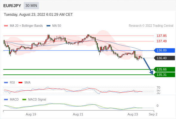 欧元/日元 当日内: 看跌,在 136.89 之下。