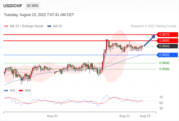 在 0.9620 之上,看涨,目标价位为 0.9655 ,然后为 0.9670 。