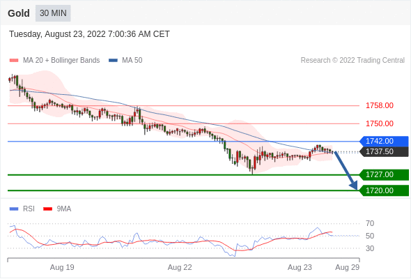 在 1742.00 之下,看跌,目标价位为 1727.00 ,然后为 1720.00 。