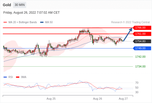 在 1749.00 之上,看涨,目标价位为 1761.00 ,然后为 1766.00 。