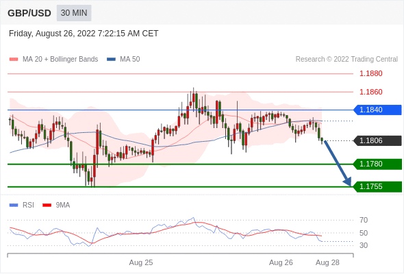 在 1.1840 之下,看跌,目标价位为 1.1780 ,然后为 1.1755 。