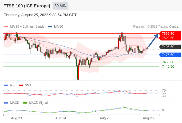 英国富时100指数期货 当日内: 看涨,当 7473.50 未被跌破。