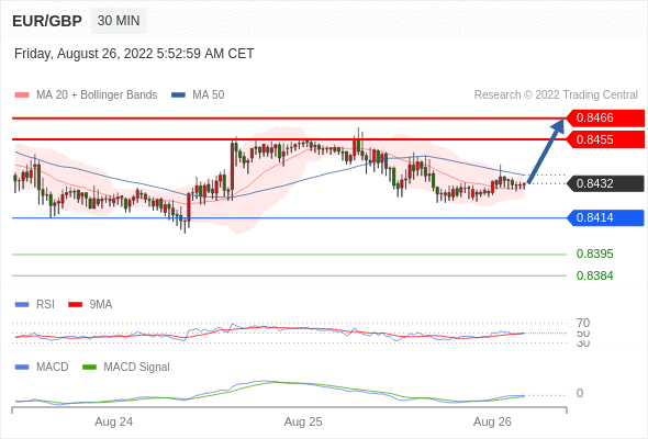 欧元/英镑 当日内: 有上涨的可能,目标价位定在 0.8466 。