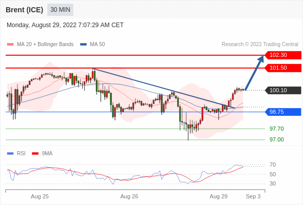 在 98.75 之上,看涨,目标价位为 101.50 ,然后为 102.30 。