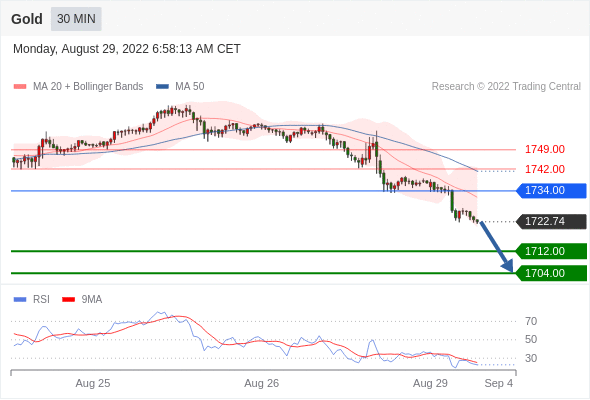 在 1734.00 之下,看跌,目标价位为 1712.00 ,然后为 1704.00 。