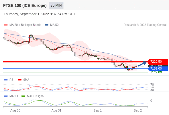 如跌破 7152 ,英国富时100指数期货 目标方向定在 7130 和 7117 。