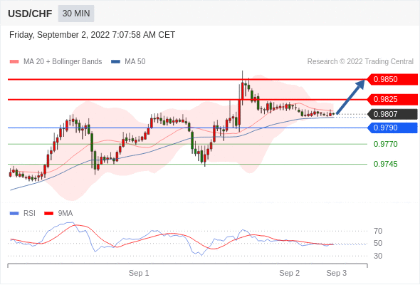 在 0.9790 之上,看涨,目标价位为 0.9825 ,然后为 0.9850 。