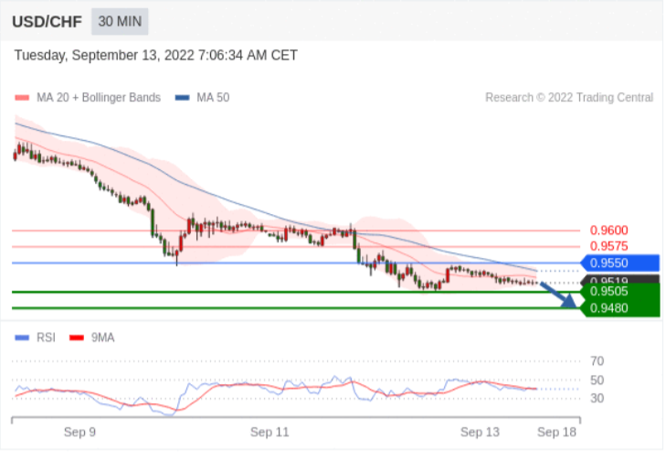 转折点:0.9550交易策略:在 0.9550 之下,看跌,目标价位为 0.9505 ,然后为 0.9480 。