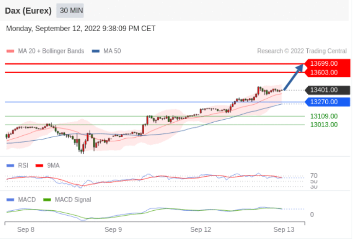 备选策略:如跌破 13270 ,德国DAX指数期货 (Eurex) 目标方向定在 13109 和 13013 。