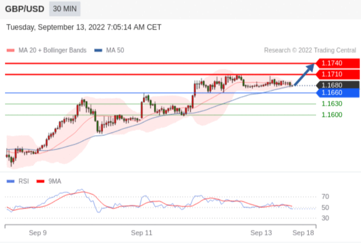 转折点:1.1660交易策略:在 1.1660 之上,看涨,目标价位为 1.1710 ,然后为 1.1740 。