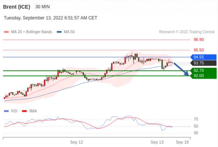转折点:94.55交易策略:在 94.55 之下,看跌,目标价位为 92.70 ,然后为 92.00 。