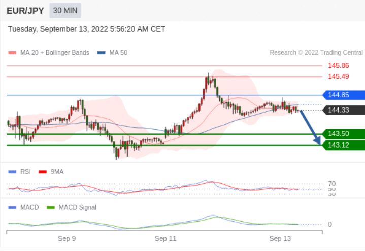 交易策略:看跌,在 144.85 之下。