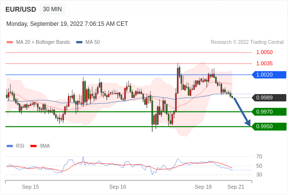 在 1.0020 之下,看跌,目标价位为 0.9970 ,然后为 0.9950 。