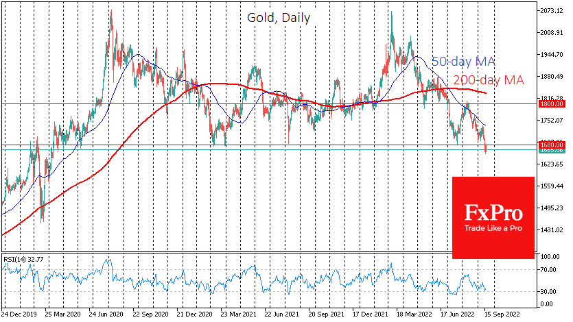 值得注意的是,上个月金价从1800美元的水平大幅回落,该水平在2月至6月期间曾多次充当支撑。 因此,黄金多头是一个接一个的,释放了之前意义重大的技术水平。