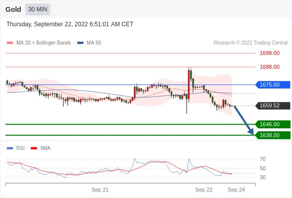 在 1675.00 之下,看跌,目标价位为 1646.00 ,然后为 1638.00 。