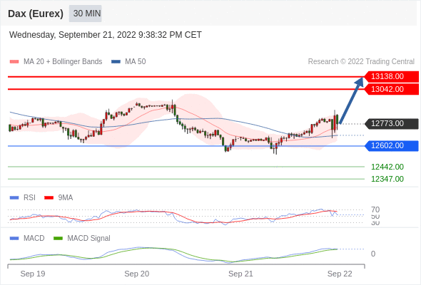 德国DAX指数期货 (Eurex)? 当日内: 看涨,当 12602.00 为支撑位。