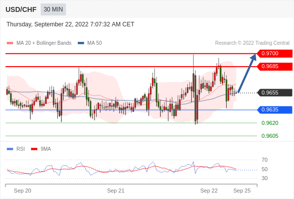 在 0.9635 之上,看涨,目标价位为 0.9685 ,然后为 0.9700 。