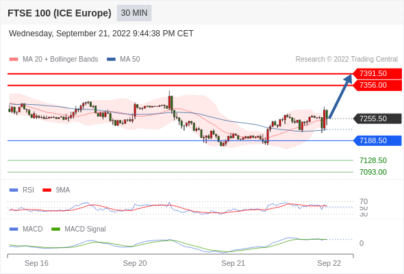 如跌破 7188.50 ,英国富时100指数期货 目标方向定在 7128.50 和 7093 。