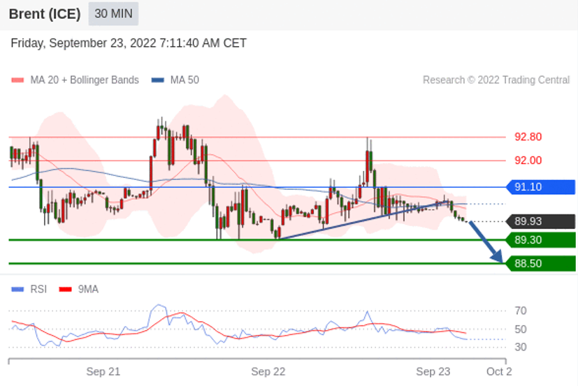 在 91.10 之下,看跌,目标价位为 89.30 ,然后为 88.50 。