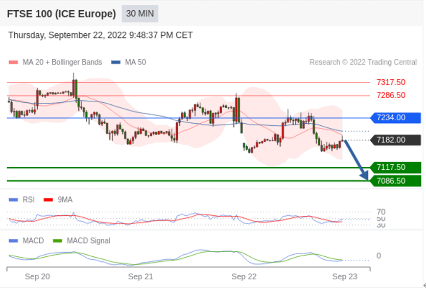 向上突破 7234 ,将带来继续上行的趋势,目标位定在 7286.50 和 7317.50 。