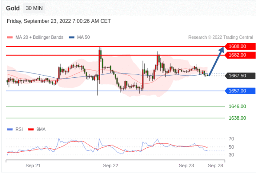 在 1657.00 之上,看涨,目标价位为 1682.00 ,然后为 1688.00 。