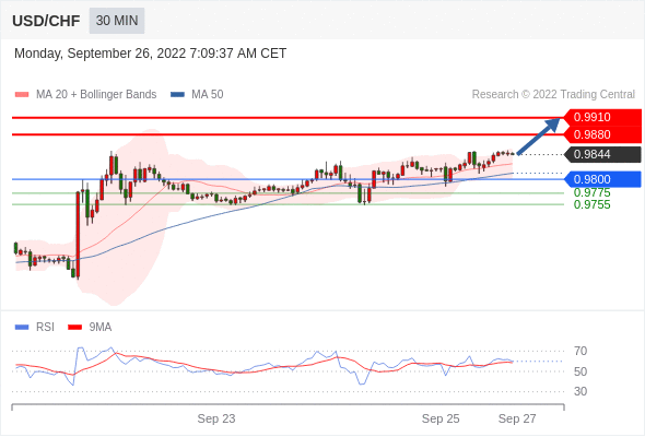 在 0.9800 之上,看涨,目标价位为 0.9880 ,然后为 0.9910 。