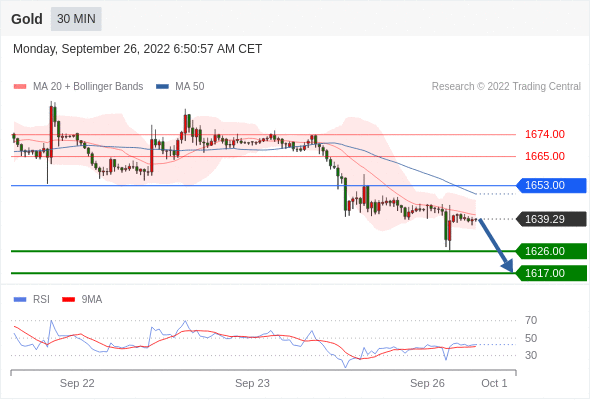在 1653.00 之下,看跌,目标价位为 1626.00 ,然后为 1617.00 。