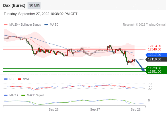 德国DAX指数期货 (Eurex)? 当日内: 看跌,在 12217.00 之下。