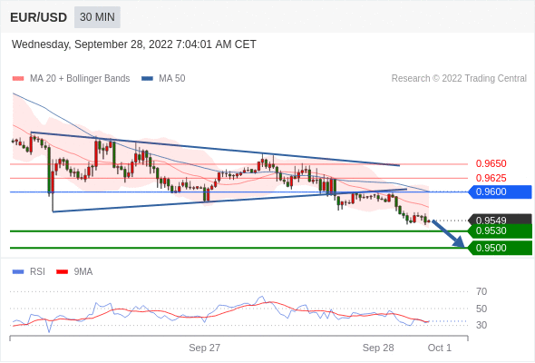 在 0.9600 之下,看跌,目标价位为 0.9530 ,然后为 0.9500 。