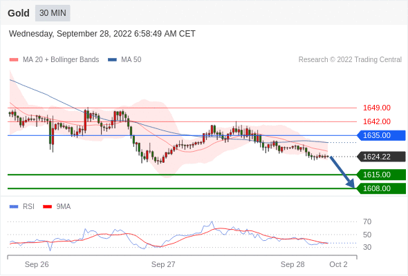 在 1635.00 之下,看跌,目标价位为 1615.00 ,然后为 1608.00 。