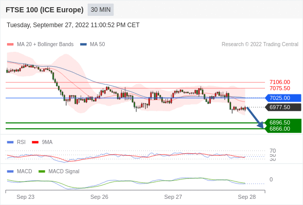 英国富时100指数期货 当日内: 看跌,在 7025.00 之下。