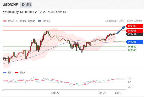 在 0.9905 之上,看涨,目标价位为 0.9965 ,然后为 0.9990 。