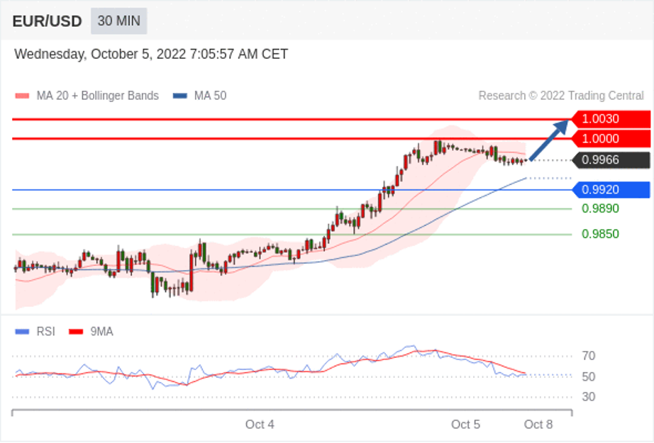 在 0.9920 之上,看涨,目标价位为 1.0000 ,然后为 1.0030 。