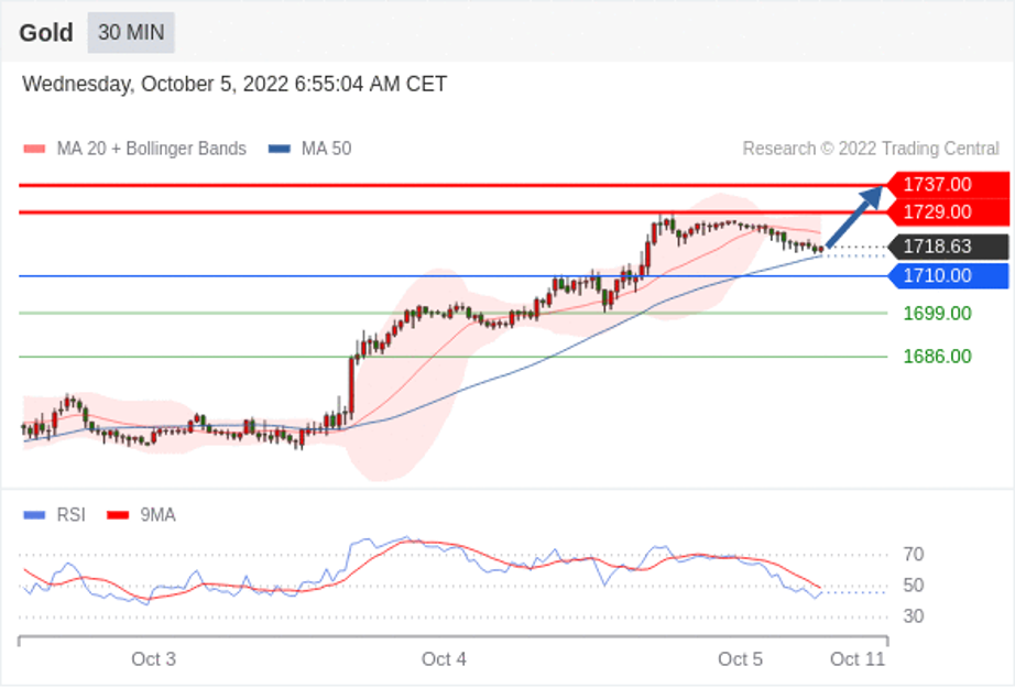 在 1710.00 之上,看涨,目标价位为 1729.00 ,然后为 1737.00 。
