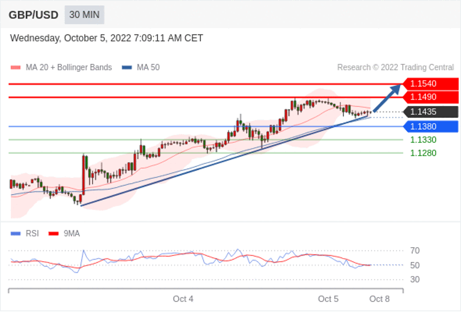 在 1.1380 之上,看涨,目标价位为 1.1490 ,然后为 1.1540 。