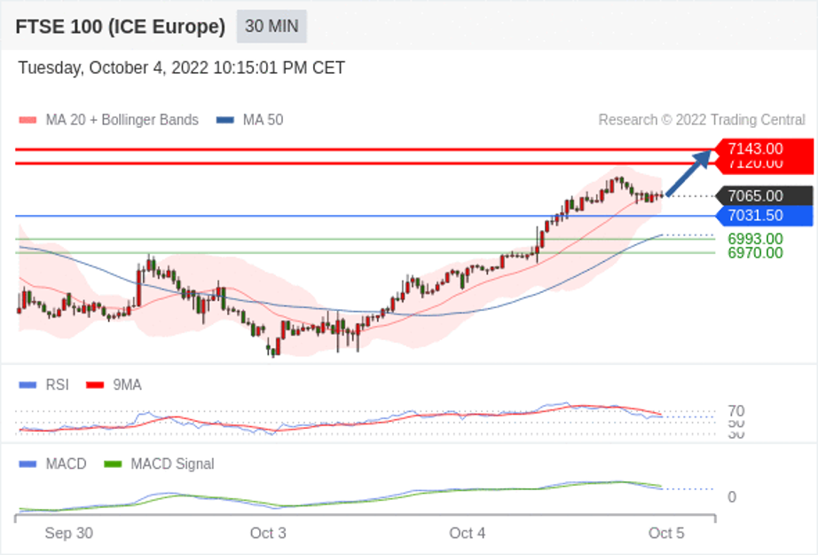 英国富时100指数期货 当日内: 看涨,当 7031.50 为支撑位,目标定在7143.00。