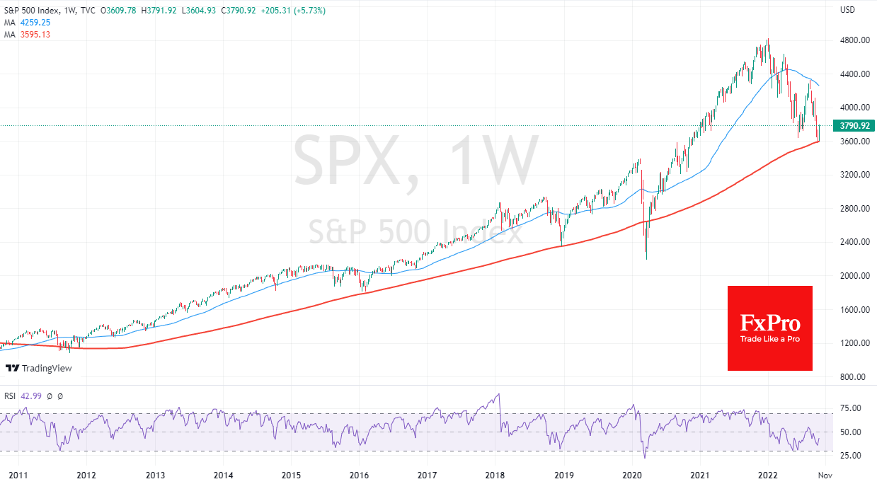 潜在买家应更多关注该指数在4000点附近的表现,50日均线在此徘徊,以及在4200点附近,200日均线在附近。 只有在这些水平上的坚定买盘才表明,我们看到的是市场情绪的根本性逆转,而不是熊市中的反弹。 反过来,只有美联储和其他央行的语气有所改变,才可能支持这种购买。