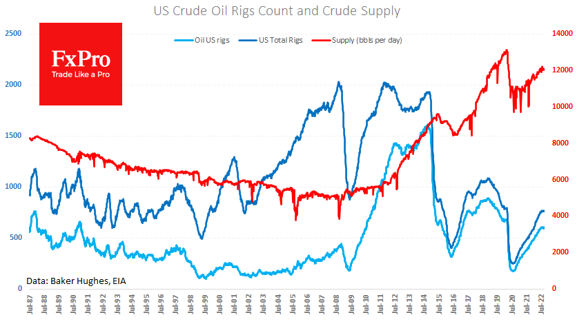 生产商并不急于逆势增加供应。 根据EIA周三发布的估计,美国原油供应量仍保持在1200万桶/桶,为过去6个月的平均水平。 这里的情况很明显:从储备中出售石油,剥夺了产油国“昨天”提高产量的动力。