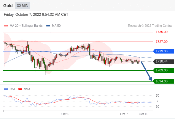 在 1719.00 之下,看跌,目标价位为 1703.00 ,然后为 1694.00 。