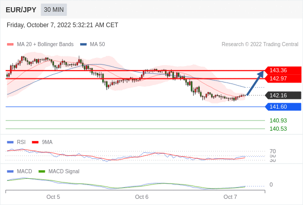欧元/日元 当日内: 有上涨的可能,目标价位定在 143.36 。