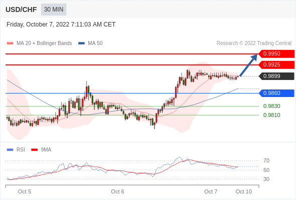 在 0.9860 之上,看涨,目标价位为 0.9925 ,然后为 0.9950 。