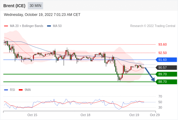布伦特原油 (ICE)? (Z2)? 当日内: 短期关键阻力位在91.60。