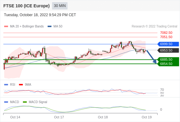 英国富时100指数期货 当日内: 看跌,在 6999.50 之下。