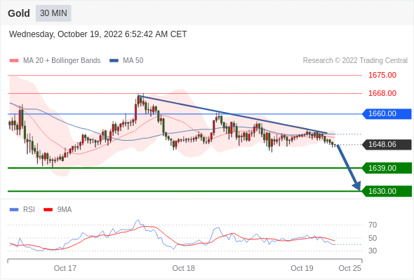在 1660.00 之下,看跌,目标价位为 1639.00 ,然后为 1630.00 。